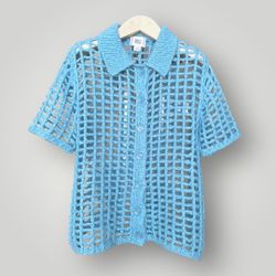 Urban Outfitters Osaka Open-Knit Cage Button Down Polo, Size S, Blue$28Manchestr Ctr, VT