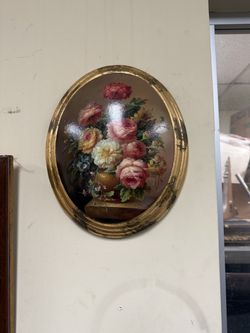 Oval Floral Painting – Vintage Style Flowers Gold Frame Wall Art$50Medley, FL