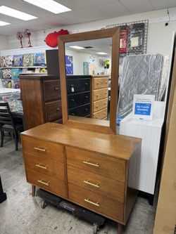 NEW Mid Century Modern Style Dresser, 6 Drawers w/ Mirror, Anti-Lock Insert Lock System $475Escondido, CA