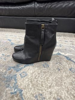 Nine West black wedge boots size 8.5 worn once perfect condition . Open to prices$60Vernon Hills, IL