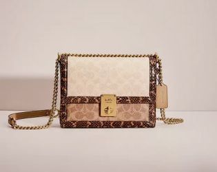 SoldCoach Hutton Mixed Media Convertible Shoulder Bag – Tan Sand/Gold $200Murrieta, CA