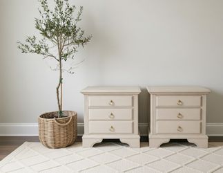 Vintage Pair Vaughan Furniture Nightstands - Beige Faux Linen Finish$400New Prt Rchy, FL
