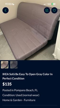 Grey Color IKEA Sofa Bed Like New . Paid $499 Sellin G For 120$120Pompano Beach, FL