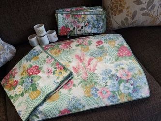 Set Of 4 Vintage Placemats/Napkins/Ceramic Napkin Rings & Green Napkin Holder With Pink Roses$15Bonita, CA