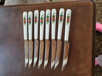 Vintage Set Of 8 Christmas Heritage Pfaltzgraff Stainless Steel Dinner Steak Knives $20Chula Vista, CA