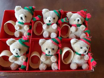 Vintage Set Of 6 Reed Teddy Bear Christmas Napkin Rings In Box$12Chula Vista, CA