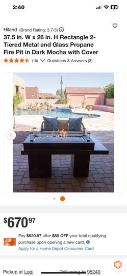 Hiland Dark Mocha Rectangle Propane Fire Pit w/ Cover Stylish Hiland propane fire pit. Dark mocha color, rectangle shape. Has a 2-tiered metal and gl$275Lodi, CA