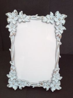 PICTURE FRAME, METAL CARVED FLOWERS WITH CRYSTALS, LIGHT BLUE, NICE PIECE$8Fort Lauderdale, FL