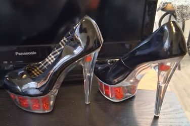 STILETTOS BLK PATENT LEATHER ROSES sz9$77Chicago, IL