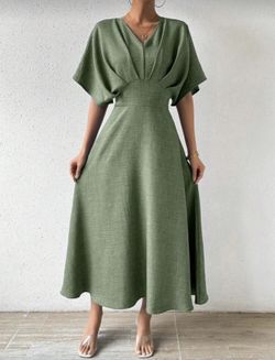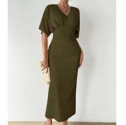 Chiquease Solid Ruched Batwing Sleeve Dress Maxi Women$15Bakersfield, CA