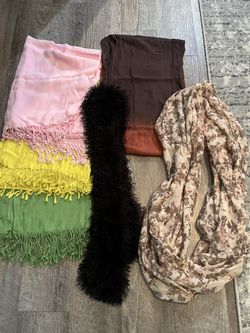 6 Pieces 4 Pashminas / Shawl, One Black Faux Fur Wrap, I New York & Company Scarf. All In Excellent Condition. $15 For All $15Pembroke Pines, FL