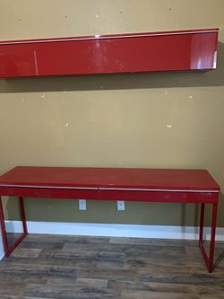 Red desk with overhead cabinet $60Visalia, CA