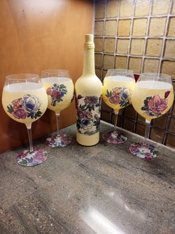 Hand Decorated Glass Bottle And Goblets $50Des Moines, IA