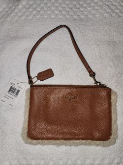 New Coach Small Wristlet In Leather And Shearling Silver/saddle/natural$50Costa Mesa, CA