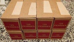 Sealed Bank Box Of 50 Rolls (2500 Coins) Of Unopened Unsearched Pennies$125Costa Mesa, CA