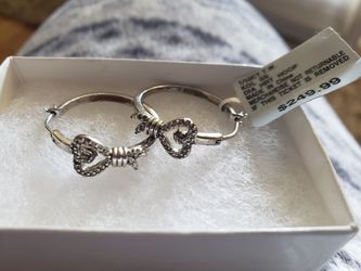 Beautiful Pair Of Sterling Silver Diamond Studded Heart Hoop Earrings. Brand New. MSRP $249.99.$100Anaheim, CA
