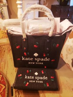 Kate Spade ELLA Cherry Embroidered Blue Denim Tote Bag & Matching Continental Wallet. Brand New With Tags. Retail Value $628.00 + tax.$450Anaheim, CA