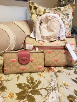 Coach Signature Stripe Heart Rowan Satchel & Matching Tech Wallet Set. Brand New With Tags. Retail Value $676.00 + Tax.$500Anaheim, CA