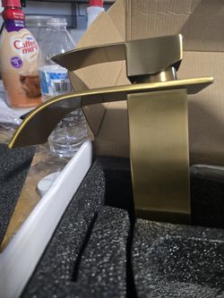 Hoimpio brushed gold waterfall faucet spout single hole bathroom sink faucet with fill line and drain # 800$35Kansas City, MO
