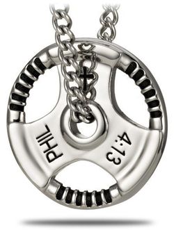 Men's Stainless Steel Stack Plate Dumbbell on Linked Chain Necklace-Phil 4:13$50Hampton, VA
