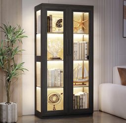 Cabinet with Glass Doors, Bookcase with 4 Shelves, Display Cabinets for Collectibles, China Cabinet with 3 Color LED Lights and Human Body Sensing, B$200Fort Worth, TX