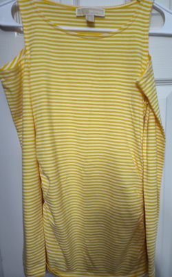 Michael Kors Shirt Women Size Small Yellow White Striped Ruched Sides$20Houston, TX