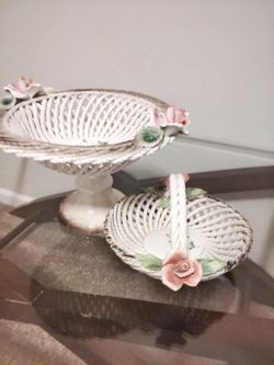 Porcelain Basket & Pedestal Bowl Set $75Houston, TX