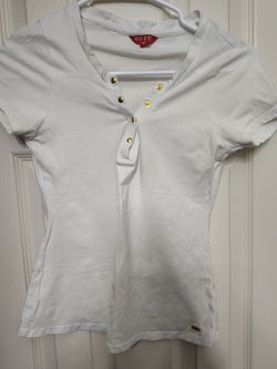 Guess White Buttoned T-Shirt - Size XS$10Houston, TX