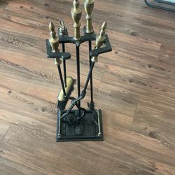 Heavy Duty 5 Pieces Fireplace Tools Sets Cast Iron Fire Place Fire Pit Wood Stove Hearth Stand Tongs Antique Brush Chimney Poker Gold Handles$200Palm Desert, CA