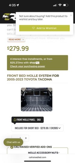 FRONT BED MOLLE SYSTEM FOR 2005-2023 TOYOTA TACOMA$100East Los Angeles, CA