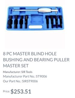 8 pc Master Blind Hole Bushing and Bearing Puller Master Set$220San Diego, CA