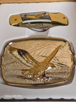 CLASSIC BELT BUCKLE AND POCKET KNIFE FLYING EAGLE OUTDOOR WILDERNESS FOREST SILVER/GOLD TONE.$40Albuquerque, NM