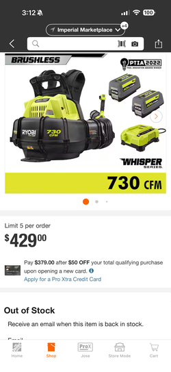 ryobi 40v backpack blower kit new$380San Diego, CA