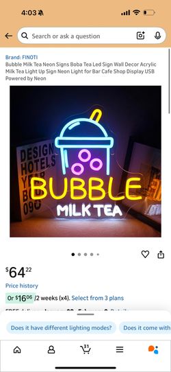 Milk Tea Boba Neon Sign $30Charlotte, NC