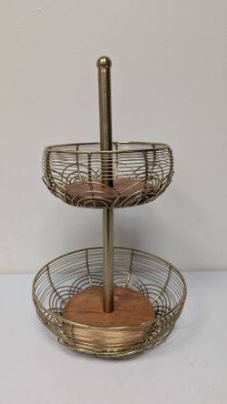 Gold-Tone Metal - Wood Two-Tiered Serving Stand. $20Hollywood, FL