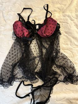 Victoria Secret Sexy Lace Sheer Polka Dot Bow Set Lingerie $25Fontana, CA