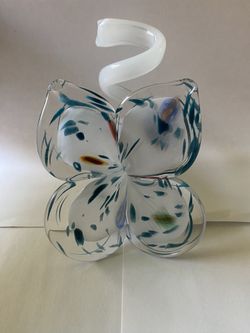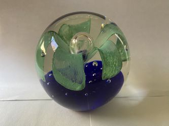 Vintage Art Glass Paperweight – Cobalt Blue & Green Flower with Controlled Bubbles$40Glmn Hot Spgs, CA