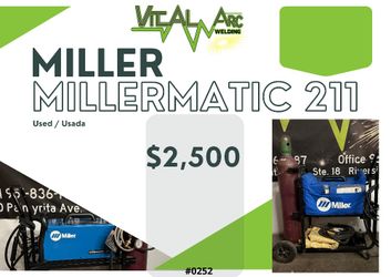 0252 – MILLER Millermatic 211 – MIG Welder / VITAL ARC WELDING$2,500Riverside, CA