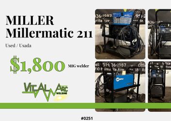 0251 – MILLER Millermatic 211 – MIG Welder / VITAL ARC WELDING$1,800Riverside, CA