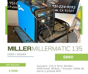 0200 - MILLER MILLERMATIC 135 – MIG Welder / VITAL ARC WELDING$850Riverside, CA