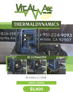 0191 - THERMAL DYNAMICS PLASMA 82 CUTMASTER – Plasma Cutter / VITAL ARC WELDING$2,800Riverside, CA
