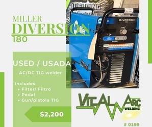 0199 - MILLER DIVERSION 180 – TIG Welder / VITAL ARC WELDING$2,200Riverside, CA