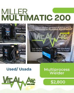 0189 - MILLER MULTIPROCESS MULTIMATIC 200 – Multiprocess Welder / VITAL ARC WELDING$2,800Riverside, CA