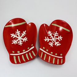 Hallmark Pair Red Snowflake Mittens Candy Serving Dishes Christmas$18Inver Grove Heights, MN