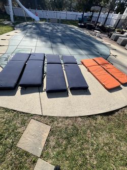 6 SUNBRELLA LOUNGE CHAIR CUSHIONS NAVY & ORANGE OUTSIDE FURNITURE CUSHIONS LIKE NEW$250Trumbull, CT
