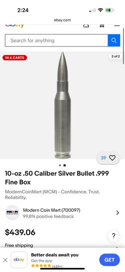 10oz .999 Pure Silver Bullets -2 Available Silver Bullets bars Coins$1,100Scottsdale, AZ