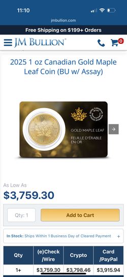 Canadian maple leaf Gold Coin - 1 Ounce .999 Eagle American Pure Gold -2 Available $1Phoenix, AZ