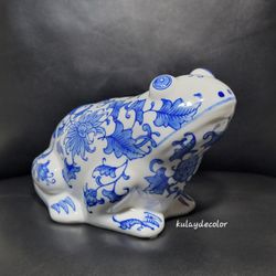Cobalt Blue White Ceramic Frog Figurine Chinoiserie Vintage Style Statue 7.75”$45St. Cloud, FL