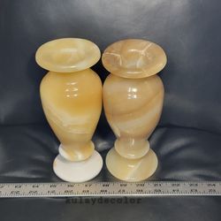 Vintage Polished Marble Onyx Vase Hand Carved Stone Decor Cream Honey Tones 8"$95St. Cloud, FL