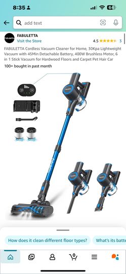 FABULETTA Cordless Vacuum Cleaner for Home, 30Kpa Lightweight Vacuum with 45Min Detachable Battery, 400W Brushless Motor, 6 in 1 Stick Vacuum for Hard$150San Antonio, TX